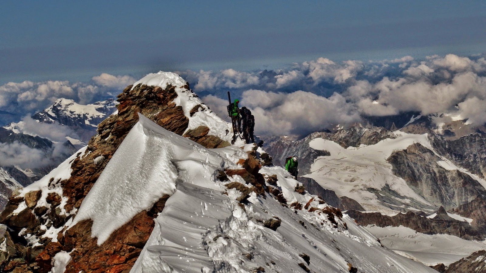 Seilschaft ,die gerade zum italienischen Gipfel rüberstapfte. Ein