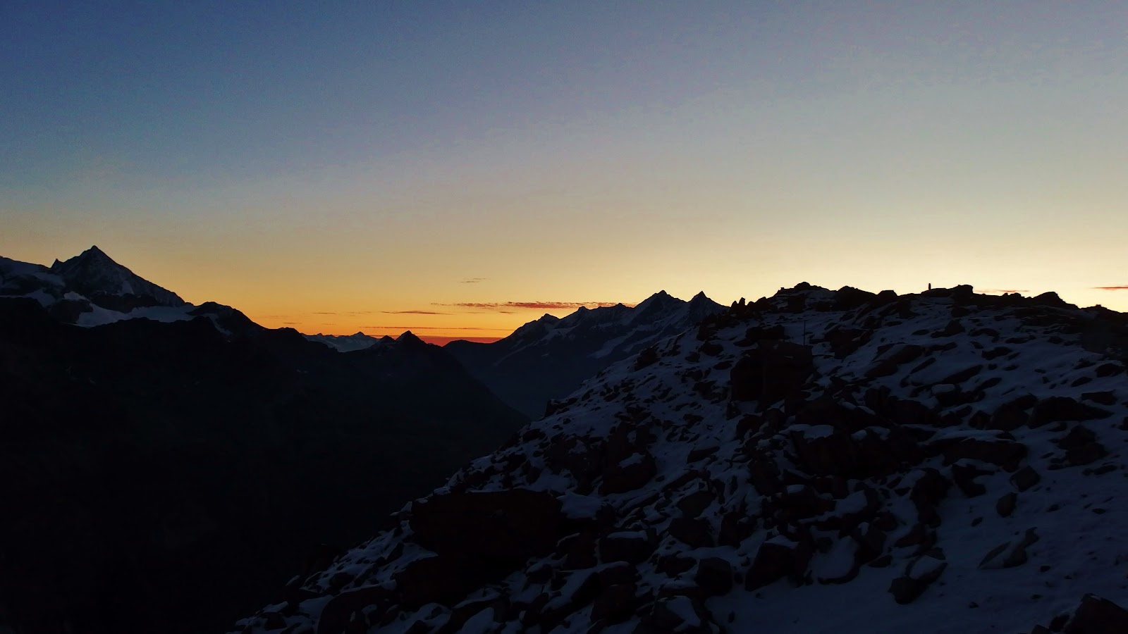 die ersten Stirnlampen am Anfang des Hörnligrates herab leuchten. Da