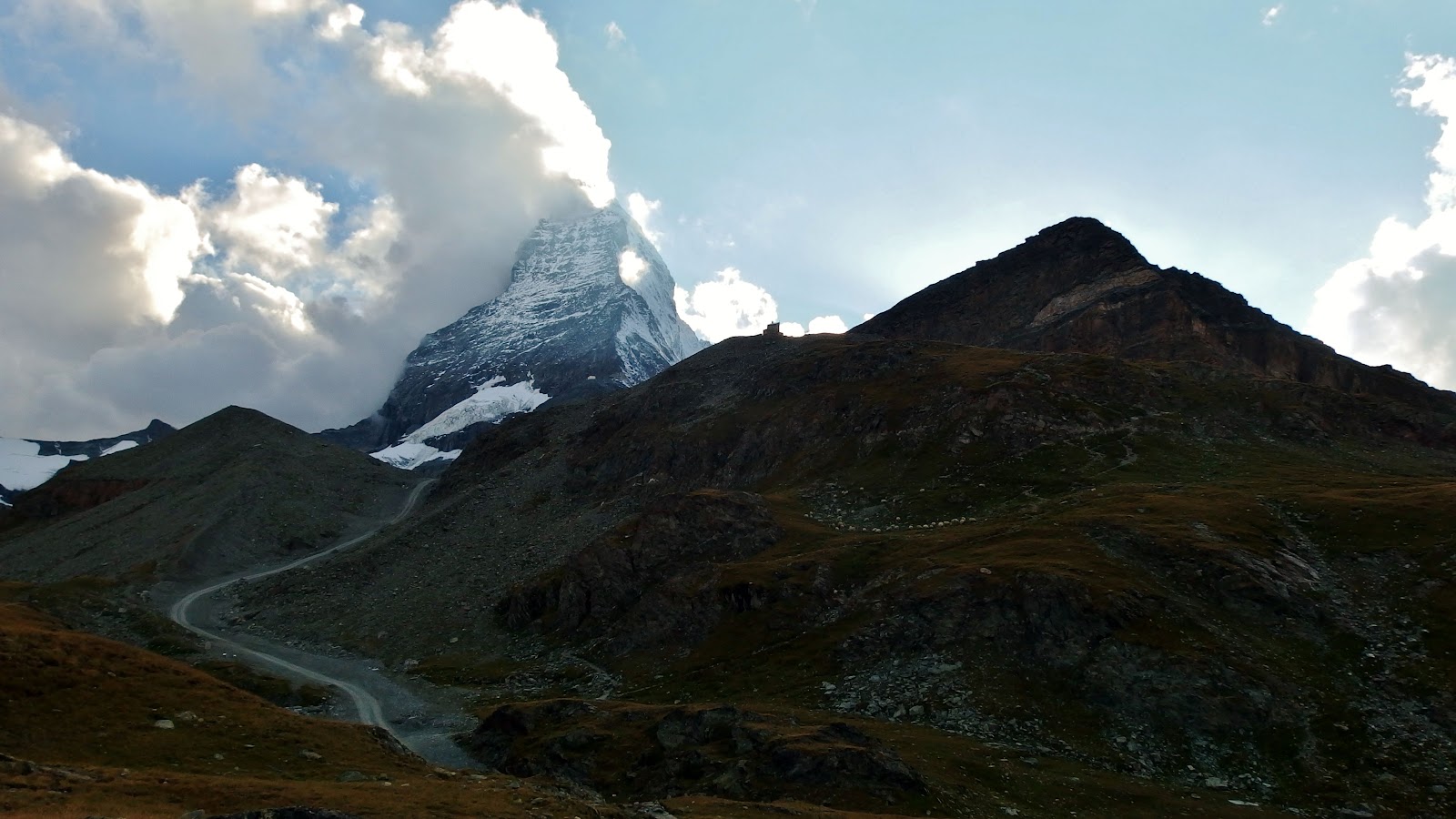 wie sich das Matterhorn wieder in Wolken hüllte und die Sonne
