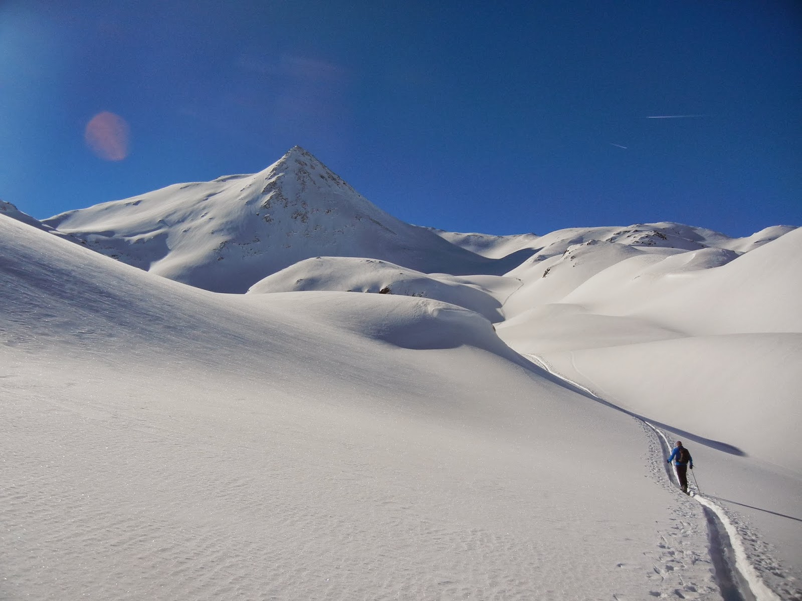Auf dem Weg zum 2.484m hohen Peischlachtörl begegnen wir einzig einer motivierten Vierer-Gruppe, die uns aber von anderen Gipfelzielen berichtet. Zuerst noch gemütlich im Schatten, heizt uns die Sonne bald wieder gehörig ein. Doch dieser Tag bleibt unvergessen, denn es eröffnet sich eine tiefverschneite, unberührte Natur, die über mehrere Stunden unser ständiger Begleiter sein wird.